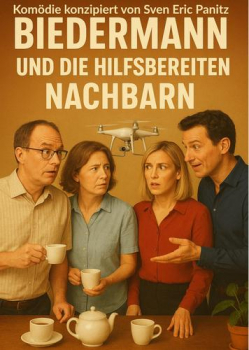 Als die Biedermanns endlich aufwachen, ist es fast zu spät: Die Nachbarn hetzen sie gegen den syrischen Familienvater Mohamed Al-Abadi auf – mit dramatischen Folgen. Eine Komödie über digitale Abhängigkeit, die Frage, was wir für 'Hilfsbereitschaft' opfern... und den einzigen Mann, der seine Zwille gegen die Drohnen richtet."*